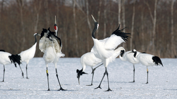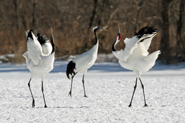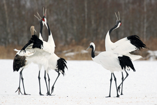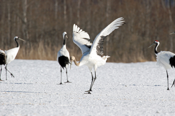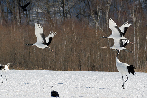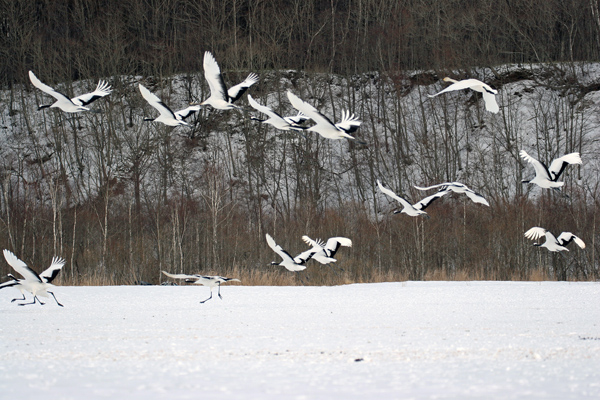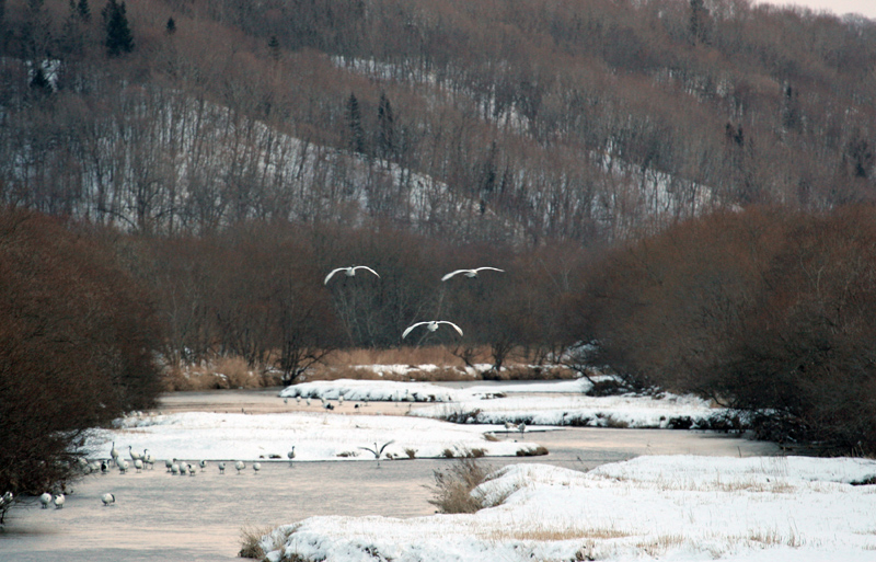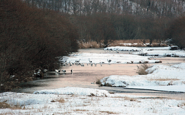 タンチョウが中々戻って来ないのでウグイ食べ放題♪ |