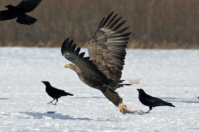 タンチョウが居るとオジロワシとのバトルを見られることも多いのですが、