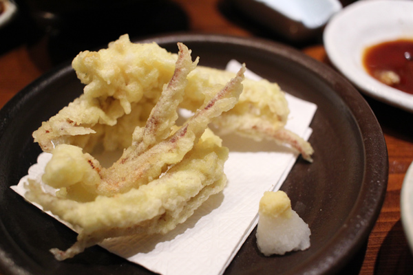 活いかのゲソは天ぷらか焼いてくれます。 天ぷらにして貰いました。 |