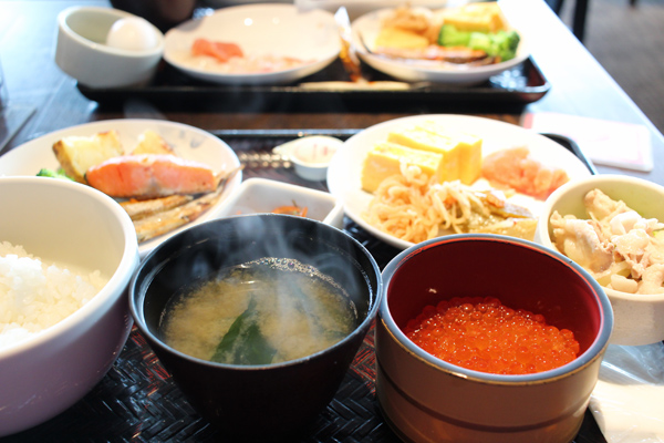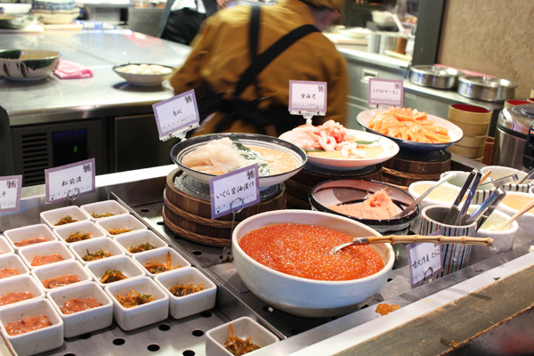 噴火湾のたらこやいくらの醤油漬けも 食べ放題ですが、いくらは同じ函館の Kホテルの醤油漬けの方(食べ放題)のが 美味しかったかな。 |
