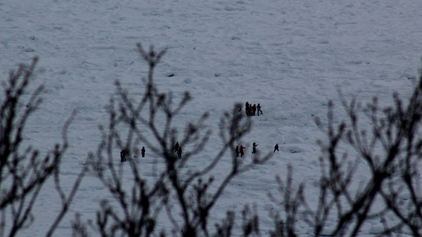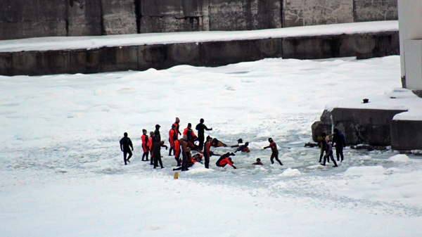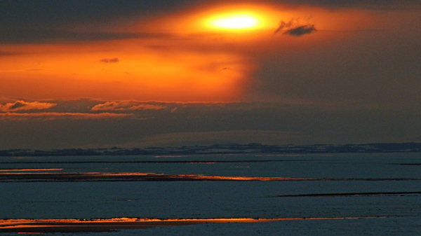 割れた氷からの水面に反射し、とても綺麗に見えました。 |