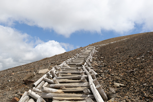 10:56 吾妻小富士頂上より「浄土平」と噴煙をあげる「 一切経山」 |