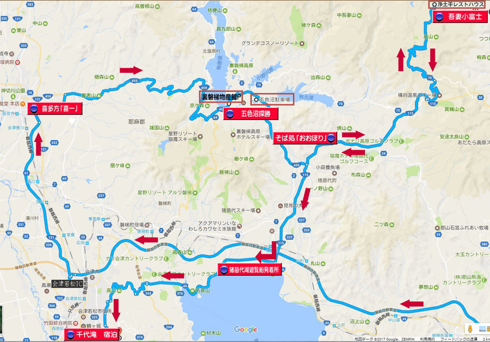 五色沼駐車場 - 裏磐梯ビジターセンター(トイレ休憩) 9:40発 |