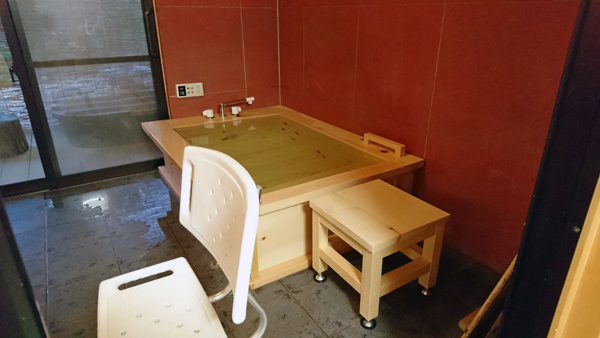 介助用椅子もあります。 | 外には露天風呂もありますが、 車椅子の母を入れたら とてもとても時間的余裕はなく入れませんでした。 着替えをさせて出るとギリギリ45分 身障者が入る際は1時間ないとキツイ・・・ |
