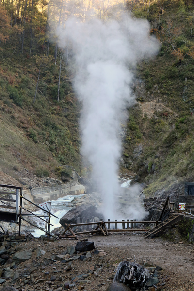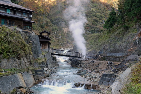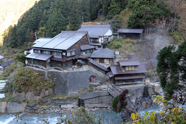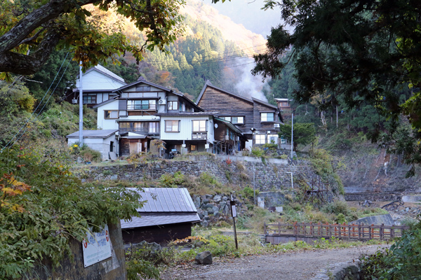 徒歩でしかこれない旅館「地獄谷温泉後楽館」が見えてきました。 HPはこちら |
