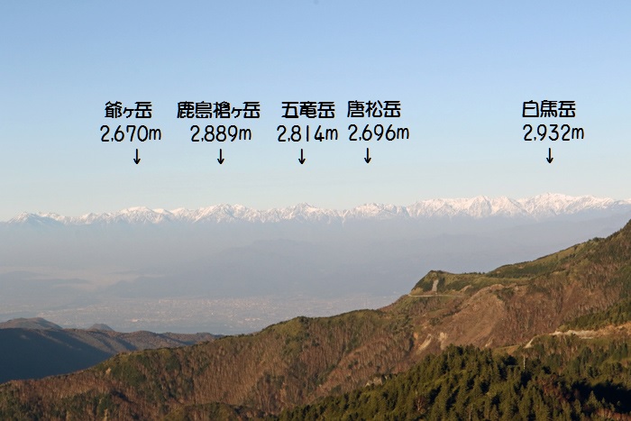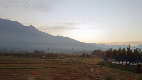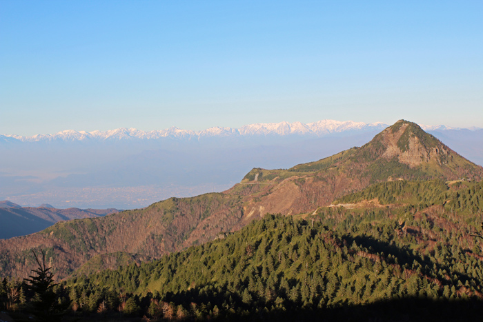 7:15 手前の山は笠ヶ岳(2,076m) 笠ヶ岳の左の山は北アルプス |