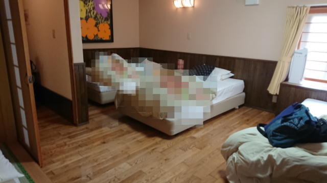 4人部屋でベッド2 + ソファーベッド(右)1+和室1名 | |