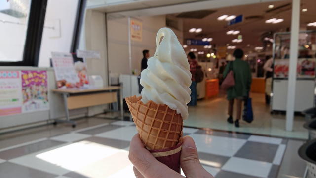 北海道で食べられなかったのでやっと食べられた! 味は濃厚なのだが、ソフトクリームというか アイスクリームとの中間のようなジャリジャリ感で あっさりしている。 我が家にはそれほど美味しいとは思えない。 牛乳、特に「赤ラベル」は濃厚で美味しいのだが、 なにせこういうところで購入すると高い!! 10:30 ながの東急出発 |