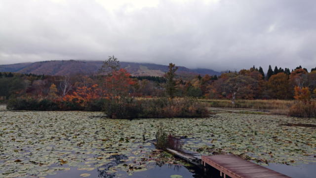 14:39 いもり池着 妙高山は天気が悪く雲の中 |