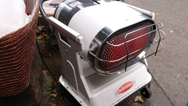 気温4℃ あまりにも寒いのでストーブの前に座って待つ ストーブの脇には膝掛けもあるが あまり暖かくない(^^ゞ |
