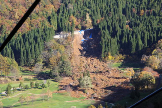 オッ!土砂崩れがゴルフ場まで流れてる。