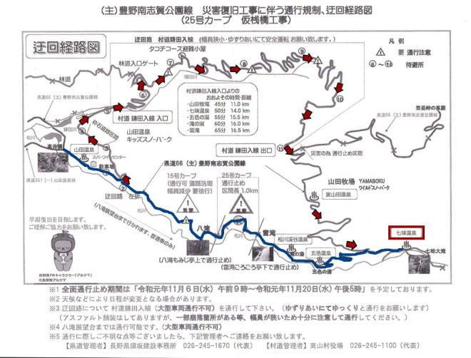 七味温泉への迂回路はこの通り!!