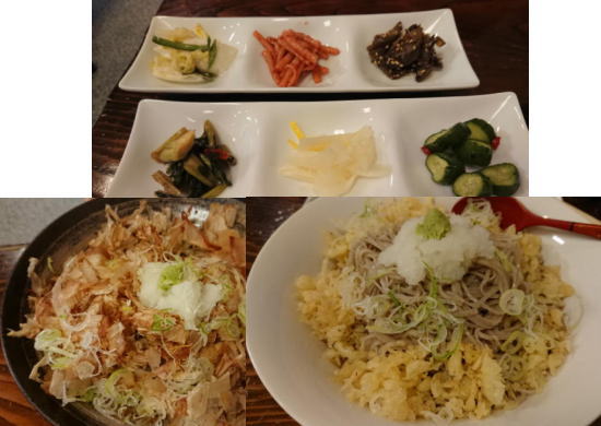 12:20 浅間温泉 ホテル玉之湯 直営 つけもの喫茶 ホテルの館主が打つおそばは格別 上:地元の方が作ったつけものがどれも美味しい~♪ 左:花かつおおろしそば 右:揚げ玉おろしそば |