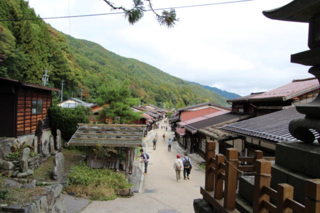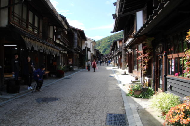 11:20 ←線路下が地下道になっているのでここを通って奈良井宿へ 「皇女和宮御下向行列」があるため、どこの駐車場も満車状態! 我が家は身障者が居ると伝えると線路脇にある 「道の駅 奈良井木曽の大橋」に行ってみてくれ と言われ行くと身障者用が開いていたのでそこに駐車。 ここからは地下道を通ってすぐに奈良井宿に・・・ 妹夫婦は約3.7Km離れた「道の駅ならかわ」に車を置き、 無料送迎バスに乗って奈良井宿へ・・・