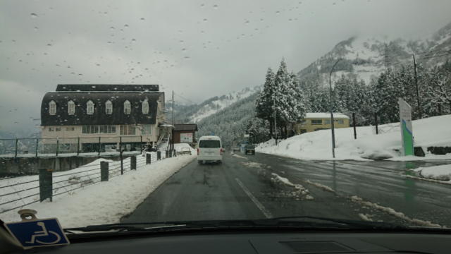 湯沢に近づくと雪がチラチラ降り、