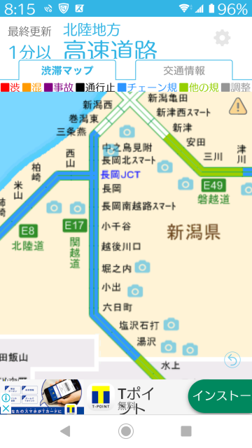 スマホで情報を見ると三条燕⇔湯沢間はチェーン規制に!!