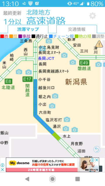 再度、道路状況を確認すると小千谷⇔湯沢間がチェーン規制