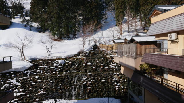 旅館の裏手には滝が・・・