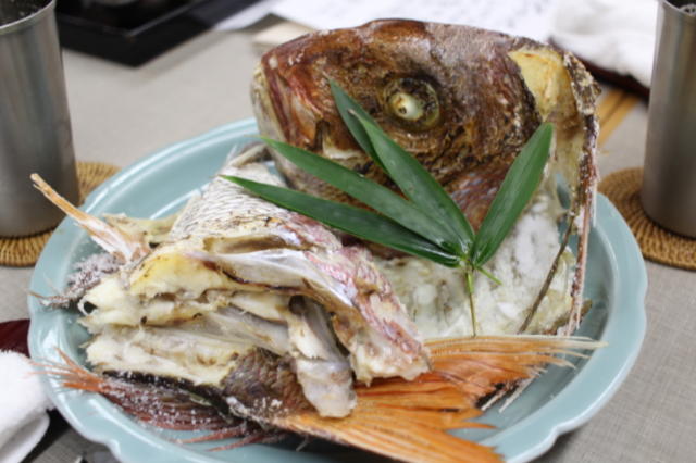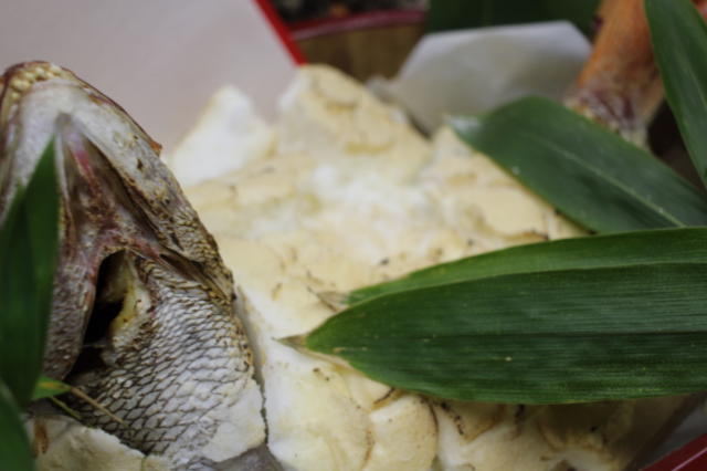 鯛の塩釜焼 お祝いには付き物に塩釜焼 |