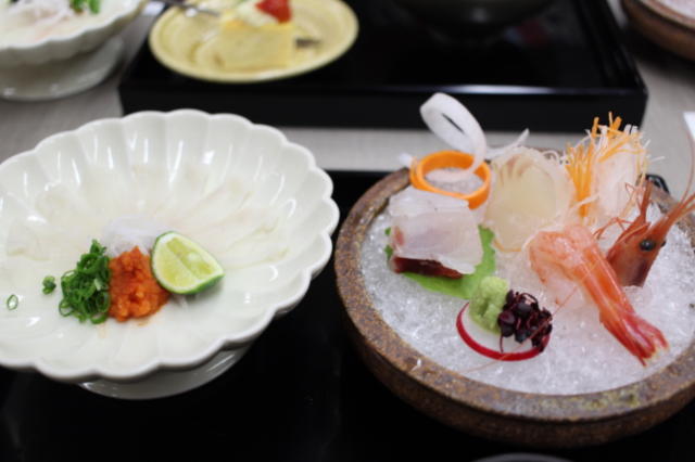 左:ふぐ刺し 右:お造り | |||||||||||||||||||