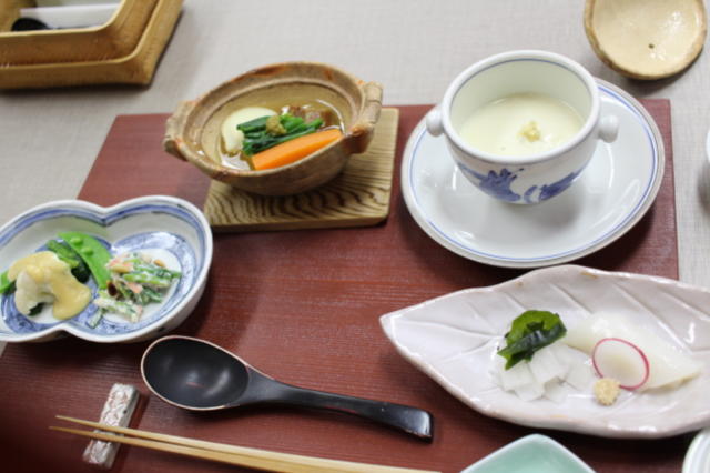 前菜(山菜抜き) チェックイン時に苦手なものを聞かれるので 伝えると別のものに変更して頂けます。 |