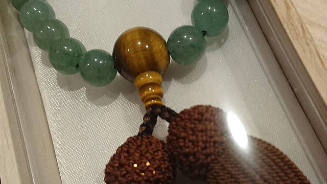 こんな感じに出来ました。 房は基本はナイロンですが、正絹を選んだので プラス1,000円追加で合計 8,500円 数珠に仕上げて本堂でご供養をしたのちに 発送(送料360円レターパック)をしてくださるとのことで 到着まで約1週間掛かるそうです。 楽しみ~♪ 数珠つくりにかかった時間は 11:00頃から初めて 2つの数珠(念珠とブレスレットタイプ)を作るのに約45分でした。 |