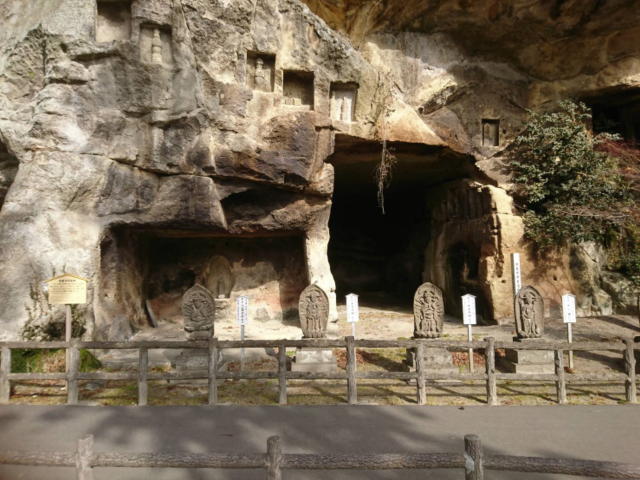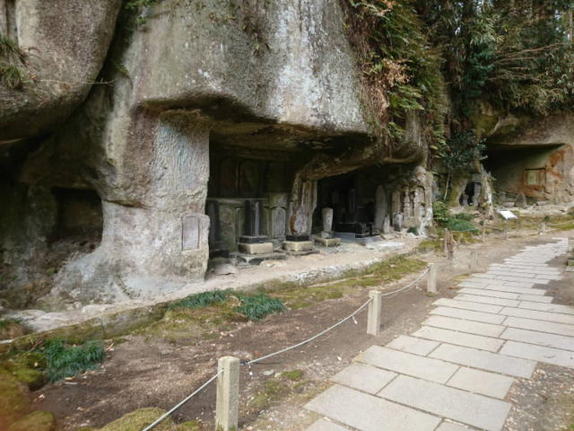 洞窟遺跡群 天台宗徒が掘ったと言われているが、 江戸時代以降の供養塔しかない事から 江戸期に掘られた洞窟群と考えられる。〖HPより抜粋〗 |