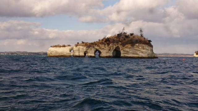 鐘島 島に空いた4つの穴に、打ち寄せる波の音が まるで鐘の打つ様に聞こえることから名づけられた |