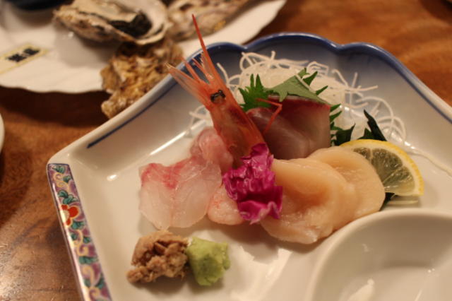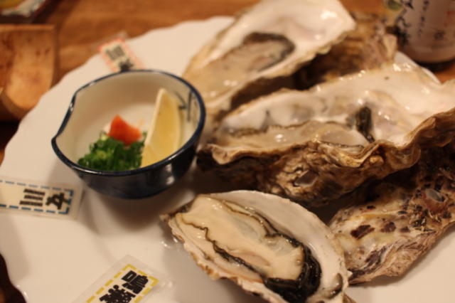 生かき食べ比べ3P 鳴瀬・女川・志津川 私は「鳴瀬産」を、夫は「女川・志津川産」を! 夫曰く「女川産が絶品とのこと(^^)v |
