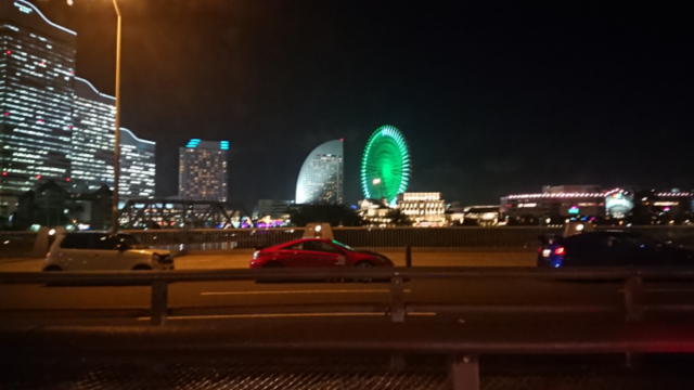 車の中で撮ったのでピンボケですが、みなとみらいの夜景が