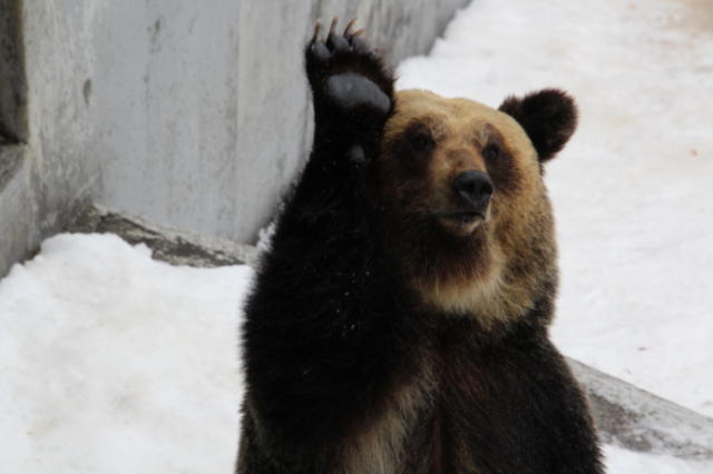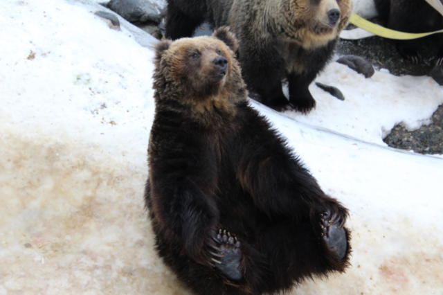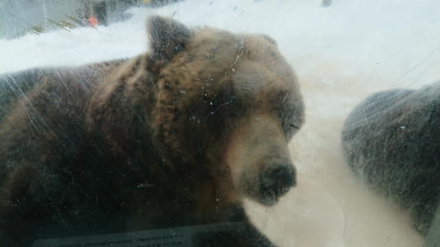 荷物を預け、フロントで「クマ牧場」の送迎バスを