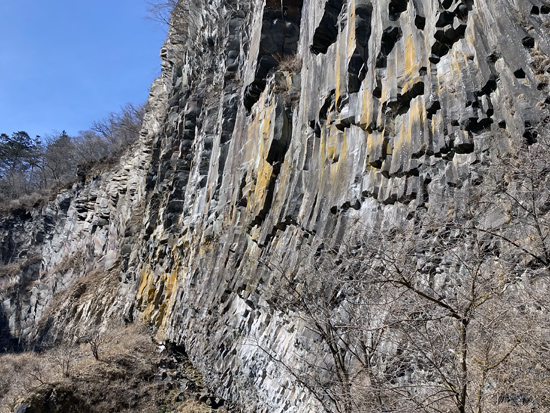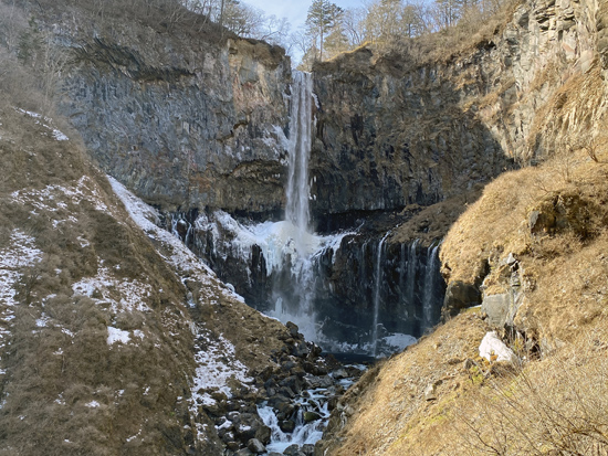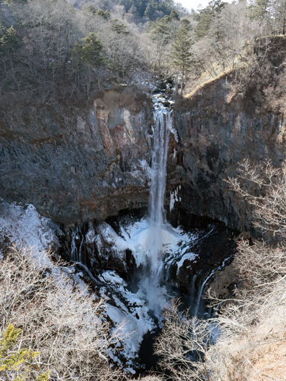 華厳の滝の右側には巨大な柱状節理 | ||