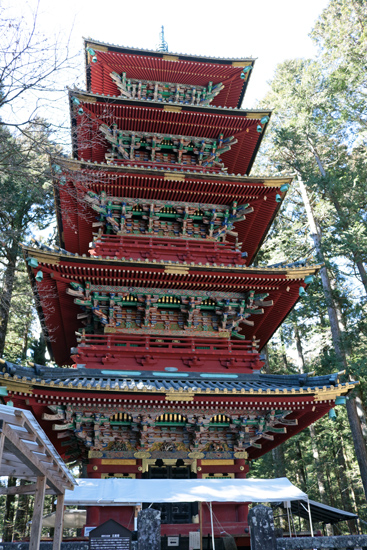 【日光東照宮 五重塔】 重要文化財 慶安3年(1650)若狭の国(福井県)小浜藩主酒井忠勝公によって奉納されました。 文化12年火災にあいましたが、その後文政元年(1818)に 同藩主酒井忠進公によって再建されました。 -日光東照宮HPより- |