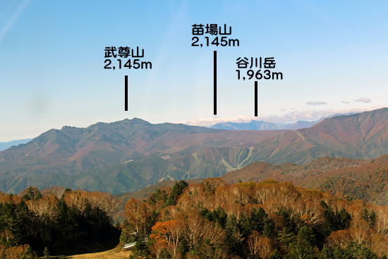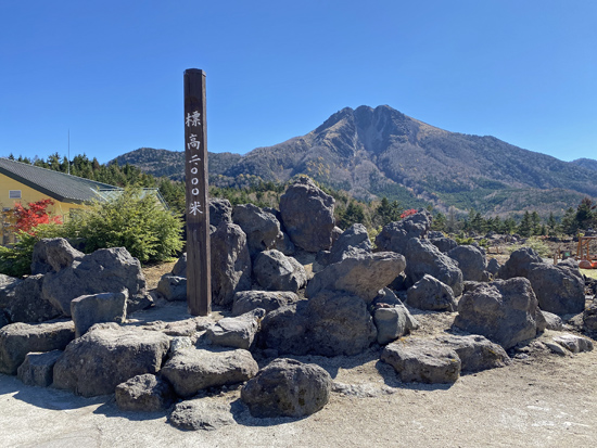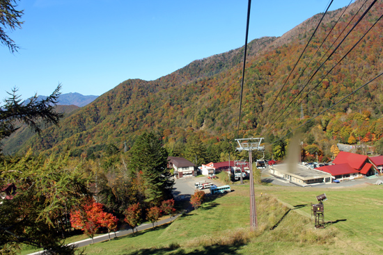 ロープウェイ山頂 標高2,000m 後にそびえたつ山は日光白根山 標高2,578m 活火山 真裏は日光・中禅寺湖方面 |