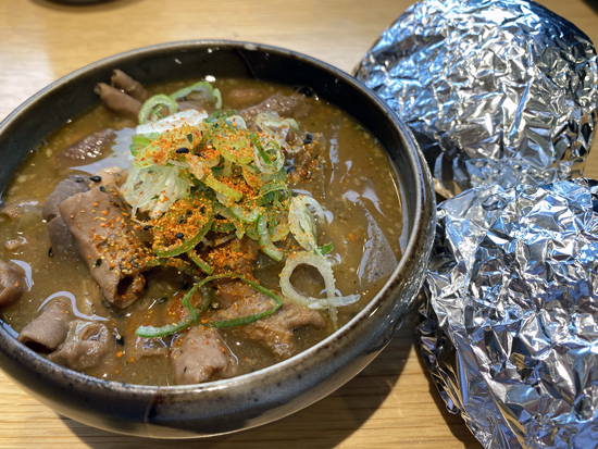 我が家にはお気に入りの食べ物がある谷川岳PAの フードコートで朝食 ここのお勧めは「もつ煮込み」 今回はにぎって来たおにぎりと一緒に・・・いただきま~す♪ いつもよりちょっとしょっぱかったけど、美味しかった(^^)v