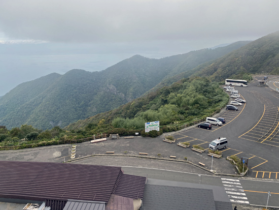 上から見た海と駐車場 雲がかかって良く見えない~((+_+)) |