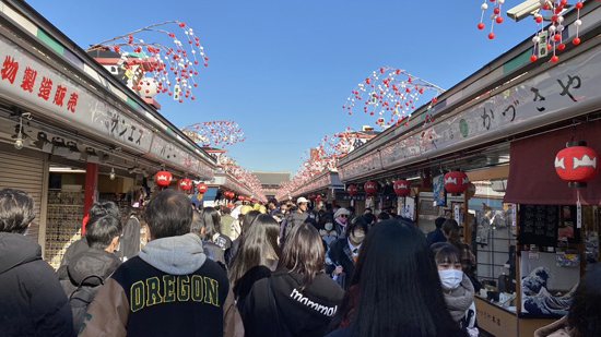 【仲見世】 修学旅行の中高生がたくさんいたので 余計に混雑"(-""-)" |