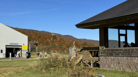 7:55~10:41 ゆっくり走ったが早く到着! ゴンドラは9時からとのこと。 本来は駐車場からバス移動だが、 足が悪いことを告げるとここでticketを発行してくれた。 ticketは8:45から発行できるということで それまで車の中で待機 |
