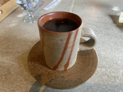 目の前の車を止めたギャラリーへ移動し、 備前焼のカップで ![]() |